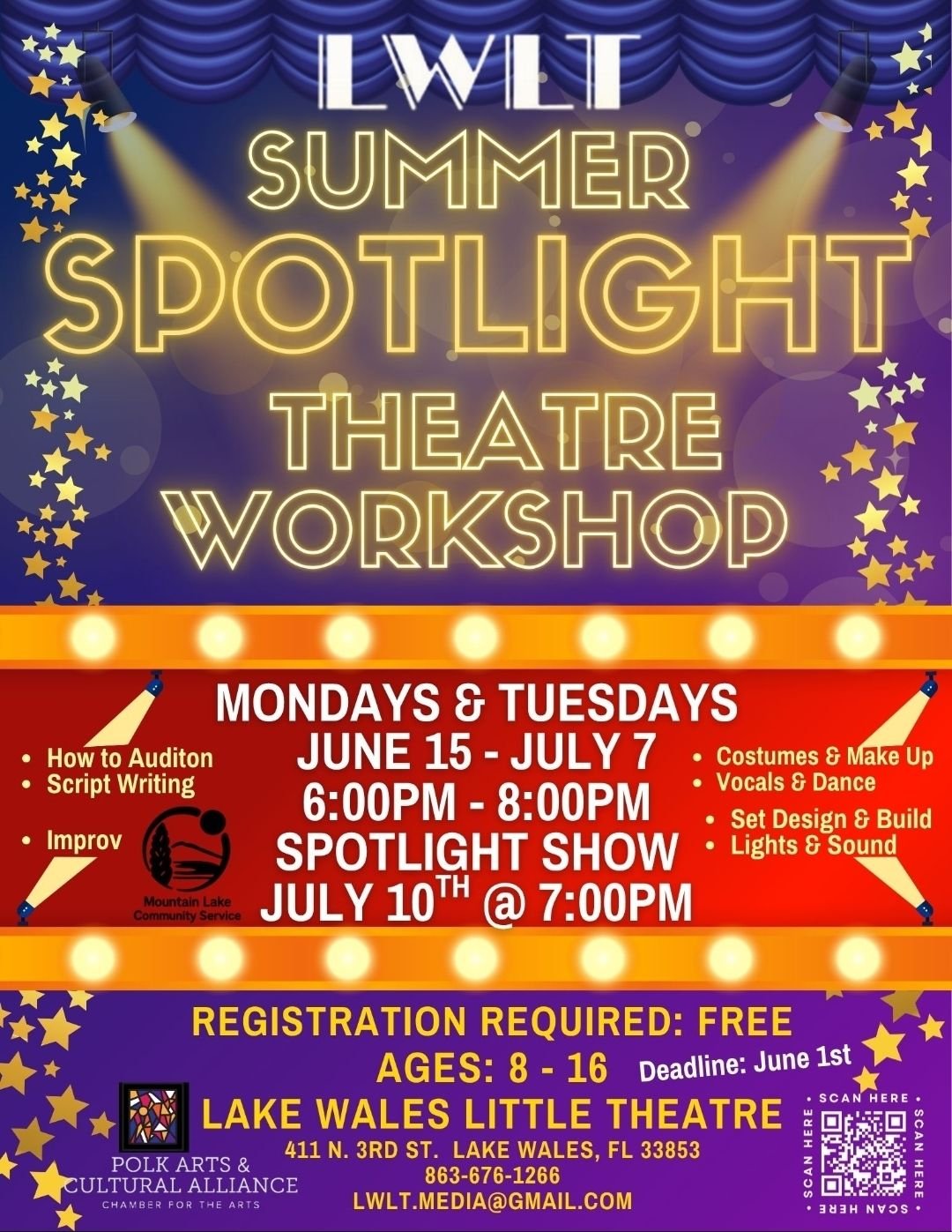 LWLT is dedicated to producing high-quality entertainment that engages, inspires, and transforms. Through the art of theater, we provide cultural enrichment, creative development, and opportunities for self-discovery. We cultivate the creative energy of our youth, to ensure a legacy of quality performing arts continues in Lake Wales.